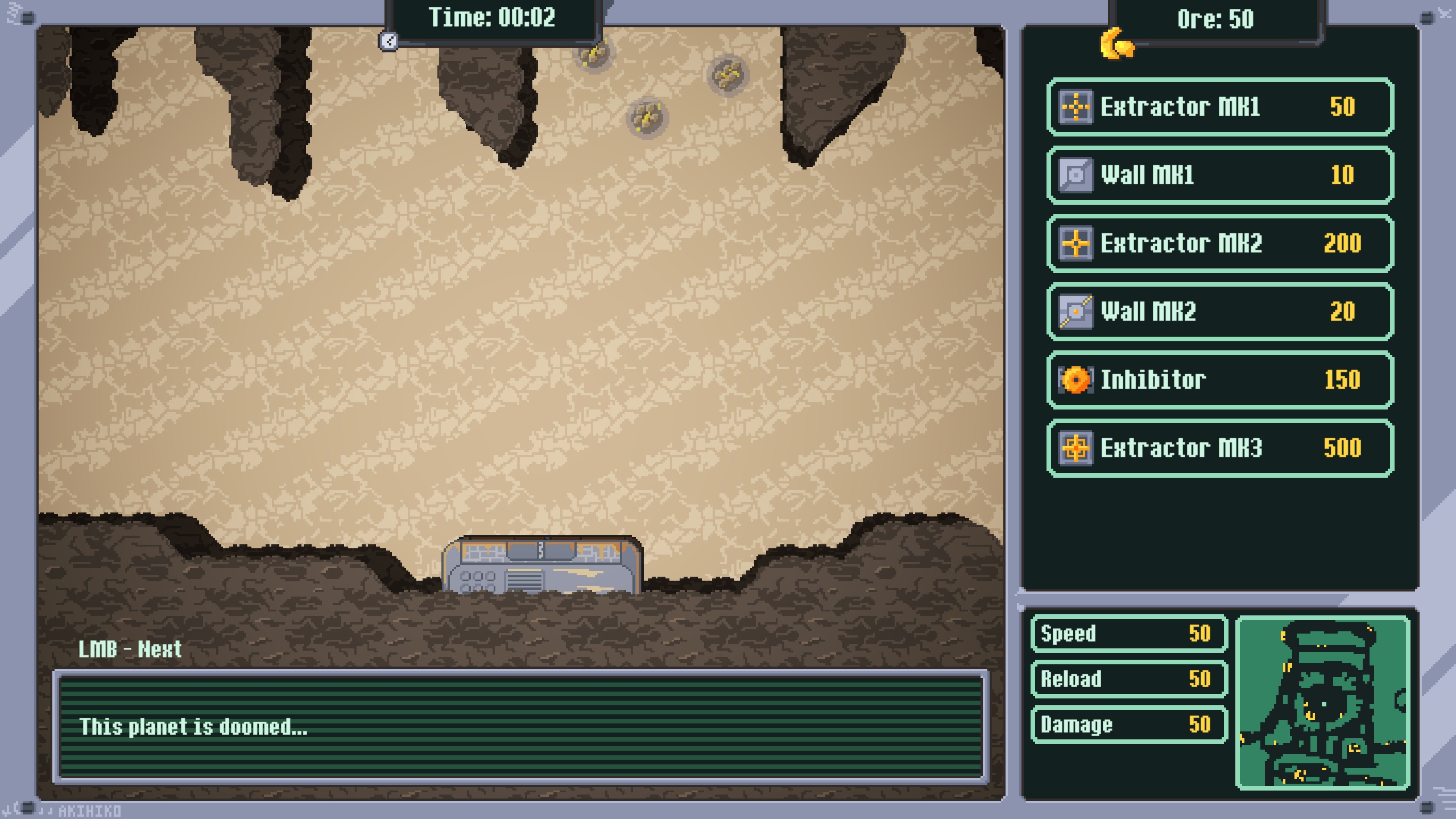 "It Grows!" is an arcade strategy game where the player must collect enough ore before it reaches the base.