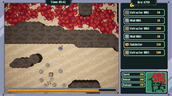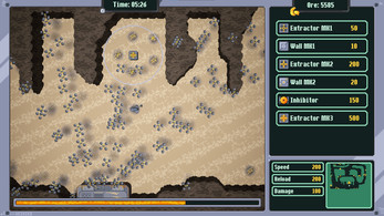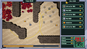 As far as other thoughts on how to improve this one I would give the player other things to manage and juggle while trying to deal with the spread of the mass. Drastically lower its speed to give more of that creeping horror vibe. But have the player have to go to their extractors to collect resources. And have those resources need to be taken back to the base to construct new extractors and walls and inhibitors. Maybe add another machine you can produce that acts like a placeable production center where you can bring resources to make the various enplacements.